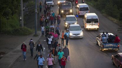 Con los primeros rayos del sol, la marcha del hambre muestra su verdadera dimensión mientras avanza por el arcén de las agujereadas carreteras del país centroamericano. Unas 1.500 personas, a buen ritmo y sin tiempo ni para secarse el sudor, conforman el grupo que salió de San Pedro Sula, la capital industrial del país, un término demasiado pretencioso para una ciudad de un millón de habitantes que acumula barrios con cientos de miles de personas donde reinan la pobreza y la violencia.
