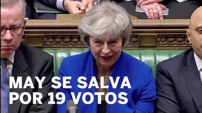 El Parlamento británico no cree en el acuerdo de Brexit entre Theresa May y la UE, pero no ha perdido la confianza en su primera ministra. May ha superado hoy una moción de censura votada en la Cámara de los Comunes, por 325 votos a favor y 306 en contra. La “moción de no confianza”, en términos ingleses, fue presentada ayer por el líder del partido Laborista, Jeremy Corbyn, después de que se conociese el rotundo rechazo de los diputados al plan de Brexit acordado entre Londres y Bruselas. Superado este desafío de la oposición, May deberá explicar el próximo lunes cuál es su plan a partir de ahora, sin perder de vista que el calendario del Brexit prevé la salida de Reino Unido el próximo 29 de marzo. Con la UE estudiando cómo articular una posible prórroga, las negociaciones parecen haberse encallado en Reino Unido: Corbyn pide para sentarse a negociar que se retire de la mesa la posibilidad de un Brexit duro, y May responde que no hacer caso a lo que votaron los británicos en el referéndum no es una opción.
