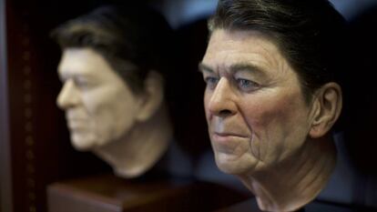El holograma es uno de los trucos de magia más antiguos que existen, explica Nussbaum. En Estados Unidos se conoce como el fantasma de Pepper, por el nombre de un ilusionista que hacía un espectáculo de fantasmas a principios del siglo pasado. La imagen se proyecta con LED desde el suelo contra una pantalla situada en un ángulo de 45 grados y el resultado es “una figura fantasmagórica” como si estuviera realmente presente. “Para mí, el holograma de Reagan es el mejor que hemos hecho”, afirma Nussbaum. “El teatro que construimos para él es una filigrana y además es el primero en una biblioteca presidencial. Como niño de los 80, crecí con Reagan y es el primer presidente que recuerdo. Ha sido muy importante y hacer esto, llevar a un presidente al futuro, es como ser parte de la historia”.