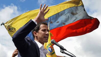 “Hoy renace la esperanza en Venezuela”, ha dicho Guaidó. “No vamos a dejar sola a nuestra gente. Mientras Maduro no protege a nadie, nosotros vamos a rescatar esta Constitución, los derechos humanos, y sí, hoy damos un paso más. Que no quede duda, el pueblo va a salir el fin de semana a entregar esa Ley de Amnistía [prometida a los militares] y a recibir la primera semana la ayuda humanitaria. Ojalá la familia militar se ponga del lado del pueblo”, añadió. El ministro de Defensa, el general Vladimir Padrino, respondió que los militares no aceptarán “a un presidente impuesto a la sombra de oscuros intereses”.