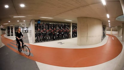 El Ayuntamiento de Utrecht ha abierto ya un aparcamiento para 12.500 bicicletas, el mayor del mundo de su clase, bajo la plaza de la estación central. De tres pisos, se accede a él desde la calle y es posible recorrerlo pedaleando hasta encontrar un hueco libre. Cuenta con un túnel que conecta con el vestíbulo y los andenes del tren. También aquí el primer día es gratis y se puede pagar con la tarjeta general de transporte, válida en todos los servicios públicos: tren, autobús y tranvía. Tiene también 700 bicis de alquiler y no cierra.