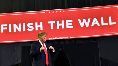 En el mitin de Trump en El Paso, el lunes por la noche, el clásico "construir el muro", eslogan que adorna indefectiblemente los encuentros del presidente con sus fieles, se convirtió en "terminar el muro". Una sutileza terminológica que Trump no respetó desde el atril: "Para que lo sepáis, vamos a construir el muro en cualquier caso", dijo. Y reiteró, una vez más, su discutible afirmación de que construir un muro a lo largo de la frontera detendría un supuesto aumento en delitos violentos y tráfico de drogas a cargo de migrantes que buscan llegar a Estados Unidos. "Las drogas que se derraman por la frontera matan a decenas miles de estadounidenses. Tendríamos un enorme recorte en esos números si tuviéramos un muro", dijo el presidente.