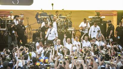Esa disputa tuvo un reflejo en las dos orillas del río Táchira, que demarca la frontera entre los dos países. El megaconcierto patrocinado por el magnate británico Richard Branson para recaudar fondos para los venezolanos, bautizado como Venezuela Aid Live, demostró, de por sí, la fortaleza del respaldo internacional a la causa de la oposición, que pasa por Washington, Bruselas y la mayoría de los Gobiernos latinoamericanos. Más de 160.000 personas acudieron a este evento que, con una inversión millonaria, convocó a músicos como Miguel Bosé, Alejandro Sanz, Paulina Rubio, Maluma y Maná.
