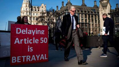 Los rostros de tres de los ministros de su Gabinete, Greg Clark, Amber Rudd y David Gauke, han vuelto este fin de semana a las portadas de la prensa por su amenaza cada día más nítida de apoyar un aplazamiento del Brexit para conjurar que este pueda materializarse a las bravas. Su posición definitiva —y la de muchos parlamentarios de las filas tories— será puesta a prueba el próximo miércoles, cuando en los Comunes se vote una retahíla de enmiendas entre las que se incluye una que plantea la prórroga de la fecha del Brexit si en un plazo inmediato May no ha recabado el apoyo necesario a su acuerdo de salida. Ese plazo puede expirar el 12 de marzo.