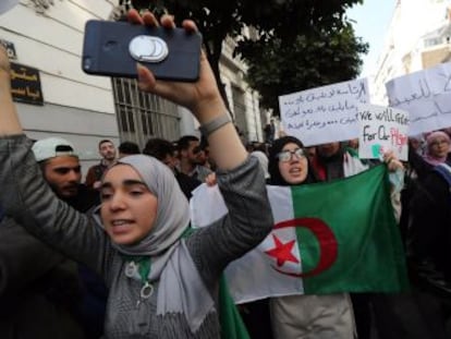 Nada más conocerse la noticia de que Abdelaziz Buteflika renunciaba a su quinto mandato, en el centro de Argel sonaron los pitidos de los coches. Pero enseguida, en las redes sociales, donde se han convocado las protestas contra el régimen, aparecieron cientos de mensajes que expresaban escepticismo e indignación. La indignación fue tomando cuerpo en forma de convocatorias para otra gran manifestación contra el régimen, el viernes 15 de marzo. Si la convocatoria tiene el mismo éxito que las precedentes se trataría de la cuarta protesta de dimensiones históricas en todo el país contra Buteflika y su régimen en solo un mes. Cada manifestación de los viernes ha sido hasta ahora mayor que la anterior.