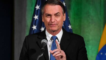 Como su admirado Donald Trump, el presidente brasileño, Jair Bolsonaro, prefiere comunicarse con sus fieles y el electorado en general a través de Twitter y Facebook, sin dar explicaciones en entrevistas con medios tradicionales. Pero Bolsonaro se ha sometido este lunes por la noche en Washington a las preguntas de una periodista poco incisiva de la cadena Fox sobre algunos asuntos incómodos. En la conversación, Bolsonaro ha profundizado en su admiración por Trump, ha rechazado el envío de soldados a Venezuela —Washington sigue sin descartar la intervención militar, a la que Brasilia se niega— y desmiente que tenga nada que ver con el asesinato de la concejal izquierdista de Río de Janeiro Marielle Franco.