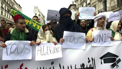 Mientras en las cadenas de información panárabe como Al Jazeera o Al Arabiya la revuelta argelina ha copado los titulares en las últimas semanas, la mayoría de Gobiernos árabes actúan como si no existiera. Su mutismo al respecto es casi absoluto. Debe de ser uno de los pocos puntos de tácito acuerdo entre los diversos ejes regionales, enfrascados en una lucha descarnada por la hegemonía regional. Incluso en Túnez, la única democracia incipiente nacida de las primaveras árabes de 2011, la policía dispersó a principios de marzo una manifestación de apoyo a las protestas argelinas. Ahora bien, los motivos detrás de esta actitud difieren entre los diversos países, así como las preferencias sobre el posible desenlace de la crisis.