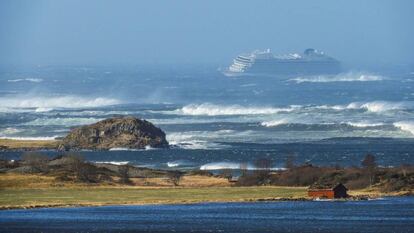 Un fallo en los motores de un crucero en aguas noruegas, con casi 1.400 personas a bordo (915 pasajeros y 458 tripulantes), obligó este sábado a comenzar una compleja operación de evacuación a unos cinco kilómetros de la costa de Hustadvika, al este del país nórdico. En la mañana del domingo unos 450 pasajeros habían sido evacuados en helicóptero, según la televisión pública noruega, y 17 personas hospitalizadas, según las autoridades del cercano municipio de Fræna. A primera hora de la tarde el navío llegaba al puerto de Molde remolcado por otras dos embarcaciones. Algunos vídeos difundidos en redes sociales muestran la situación desoladora que se vivió en el barco, con muebles que se desplazaban de un lado a otro y trozos de techo desprendiéndose.