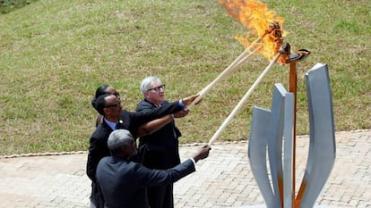 "Nuestro pueblo cargó un peso inmenso sin casi quejarse", agregó. "Eso nos hizo mejores y más unidos que nunca". "Nada tendrá jamás el poder de enfrentar de nuevo a los ruandeses. Esta historia no se repetirá. Es nuestro firme compromiso", prometió. Kagame lanzó poco antes las conmemoraciones del genocidio encendiendo la llama del recuerdo en el memorial de Gisozi en Kigali, en donde más de 250.000 víctimas fueron enterradas.