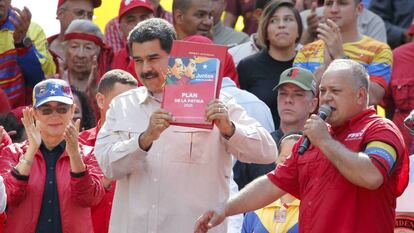 El sucesor de Hugo Chávez volvió a responsabilizar a la oposición de la mayor crisis eléctrica sufrida por Venezuela en el último mes con tres apagones masivos. Habló de nuevo de "ataques cibernéticos" con el apoyo de la Administración de Donald Trump y añadió a la ecuación Colombia y Chile. Sin embargo, en medio del creciente agotamiento de la población desempolvó la idea de la concertación. "Pongamos sobre la mesa todas las cartas", continuó. "Cesen los ataques terroristas y las emboscadas y, con el acompañamiento de México, Bolivia, Uruguay y El Caribe, Venezuela pueda instalar más temprano que tarde una mesa de diálogo nacional con todos los sectores políticos, culturales, económicos y sociales". "Llamo al diálogo nacional", insistió.
