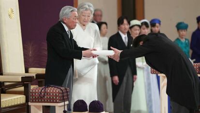 Llovía en el exterior del palacio imperial, en el centro de Tokio. Centenares de personas con paraguas miraban sus teléfonos y tabletas. En el interior del palacio, en el Salón de Pino reservado para las ceremonias más importantes, Akihito completaba un acto que no ocurría desde hace 200 años: la abdicación de un emperador. “Espero, junto a la emperatriz, que la era Reiwa que comienza mañana sea una época estable y fructífera. Rezo con todo mi corazón por la paz y la felicidad del pueblo en Japón y en todo el mundo”, fueron sus últimas palabras oficiales como jefe de Estado.