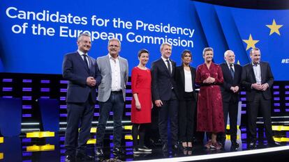 Los representantes de las seis principales familias políticas europeas confrontan sus respectivos programas durante un acto celebrado en el Parlamento Europeo en Bruselas