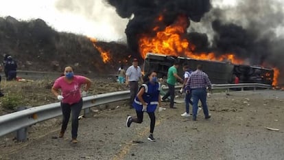 Las imágenes publicadas por medios locales muestran el caos que se formó tras el accidente, con los supervivientes desesperados en busca de ayuda. El autobús quedó completamente calcinado, tirado a un lado de la carretera, a la altura del kilómetro 245 de una vía que periodistas locales afirman que es muy accidentada por sus pendientes. “En días de neblina es muy difícil transitar, hay que tener mucho precaución”, dijo Martín Hernández Alcázar, reportero del diario La Jornada de Oriente, uno de los primeros en informar del incidente.