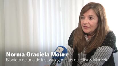 Semejante unión fue posible porque Elisa se hizo pasar por hombre, un artilugio que terminó por descubrirse y obligó a la pareja a huir a Portugal y finalmente a Argentina. La periodista de la agencia Efe Cristina Terceiro ubicó a la bisnieta de Marcela Carmen Gracia en Buenos Aires. “Esto es algo nuevo para mí”, contó. “De casualidad, el 3 de junio del año pasado puse en el buscador de Internet el nombre de mi abuela como yo la conocía, porque quería hacer el árbol genealógico y necesitaba tener más datos", explica la mujer, de 61 años. Junto con las referencias a la película, Norma encontró el libro del historiador Narciso de Gabriel, Elisa y Marcela. Amigas y amantes, y una fotografía de su antepasada.