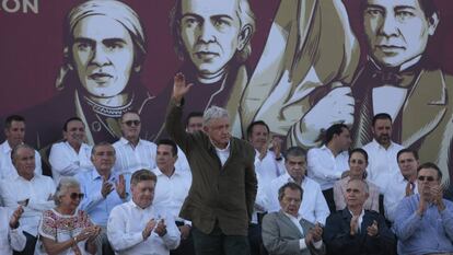 López Obrador ha empezado a hablar cuando el aire frío de la tarde empezaba a remover las espaldas de algunos de los gobernadores que le han acompañado en la tarima. El mandatario ha dado su discurso poco después de que lo hiciera el presidente de la Cámara de Diputados, el histórico dirigente izquierdista Porfirio Muñoz Ledo. Ha sido probablemente el más contundente de entre los oradores. “Desde hace 100 años que no tenemos una relación con EE UU tan accidentada”, ha dicho. “No podemos aceptar que la migración sea una palabra maldita. ¡Es un derecho humano! No podemos aceptar diálogos mentirosos”.