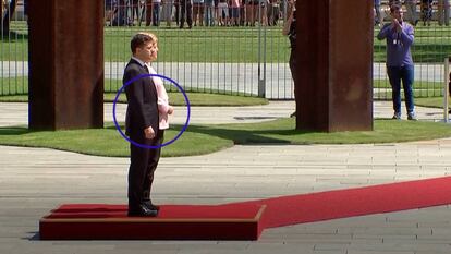 La canciller alemana, Angela Merkel, ha recibido este martes al flamante presidente de Ucrania, Volodímir Zelenski, en Berlín. Mientras ambos escuchaban los himnos de sus respectivos países, se pudo observar cómo la canciller sufría un episodio de espasmos y convulsiones, como si le costara mantenerse en pie. "Luego he bebido al menos tres vasos de agua, que claramente necesitaba, y me encuentro muy bien", explicaba Merkel durante la rueda de prensa conjunta ofrecida en la cancillería con Zelenski, más de una hora después del incidente.