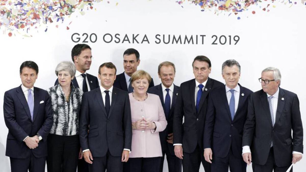 Los principales líderes de la Unión Europea y de Mercosur se apretujaban en una pequeña sala del G-20 en Osaka para salir en una foto importante, que marca un acuerdo que ha costado exactamente 20 años alcanzar. Jean Claude Juncker, el presidente de la Comisión, visiblemente agotado, trataba de trasladar entusiasmo en las palabras pese a su tono cansino. "Es un momento histórico", aseguraba mientras a su lado sonreía Emmanuel Macron, el presidente francés, uno de los que más se resistió, presionado por los agricultores galos.