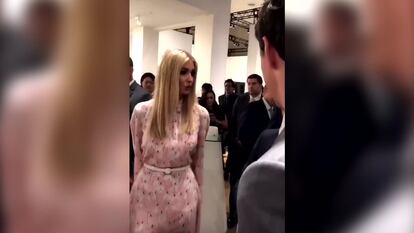 Con gobernantes o con empresarios, en Japón o en Seúl, han quedado múltiples imágenes de su paso por la cita. Pero si solo una pasase a la posteridad, sería la de un vídeo que difundió el Gobierno francés. En él, la hija de Trump aparece tratando de meter baza en un círculo con Theresa May, Emmanuel Macron, la directora gerente del FMI, Christine Lagarde, y el primer ministro canadiense, Justin Trudeau. Macron hace alguna reflexión sobre justicia social a la que May responde sobre la incorporación del factor económico. Ivanka interviene entonces con un comentario sobre la industria controlada por varones, que no obtiene réplica de nadie, y Macron vuelve a dirigirse a May. Lagarde, mientras la hija de Trump habla, sacude la cabeza y pestañea varias veces en silencio.