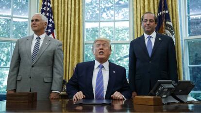 En materia migratoria, no todas las cartas están sobre la mesa. El presidente Donald Trump ha aclarado este lunes que la amenaza de imponer aranceles a México como castigo por no frenar la ola migratoria ya no está en discusión. “Creo que el presidente [Andrés Manuel López Obrador] está haciendo un gran trabajo”, sostuvo el republicano tras firmar un paquete de ayuda de 4,6 mil millones de dólares aprobado por el Congreso para ayudar al gobierno federal a enfrentar el aumento de inmigrantes centroamericanos en la frontera de EE UU y México. Hace un mes, Trump había anunciado un gravamen escalonado a todos los productos mexicanos, que luego descartó tras llegar a un acuerdo migratorio con el país vecino del sur, el que se comprometió a controlar con más agentes las entradas.