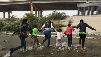 Un grupo de inmigrantes cruza el río entre Ciudad Juárez (México) y El Paso (EE UU), en mayo. En vídeo, Marcelo Ebrad, canciller de México, habla sobre los mexicanos deportados de EE UU.