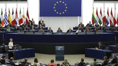 La división en el seno de los socialdemócratas europeos mantiene en vilo la elección de Ursula von der Leyen como presidenta de la Comisión Europea, que se vota este martes en Estrasburgo. La candidata lanzó este lunes una ofensiva para atraer a socialistas y liberales con propuestas ambiciosas en cambio climático, economía o renovación institucional para hacerse con los 374 votos afirmativos que necesita, si es posible, procedentes de partidos europeístas. Los nuevos compromisos no bastaron para despejar esa incertidumbre: varias delegaciones socialistas, entre ellas la alemana, siguen rechazando su nombramiento.