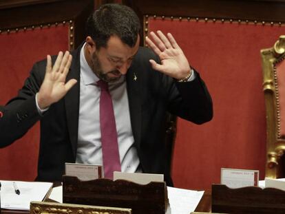 Conte se refirió al caso de la trama rusa tras un proceso de recogida de información en el que, dijo, Salvini no quiso colaborar. El ministro del Interior, muy molesto porque decidiese comparecer en el Senado para hablar sobre un caso que le afecta a él y a su partido, se ha negado a dar ninguna explicación en las últimas semanas. Las que dio el primer ministro, sin embargo, tampoco aportaron demasiada luz. El primer ministro confirmó que Gianluca Savoini, el hombre que según las escuchas publicadas por la web Buzzfeed, negoció con enviados del Kremlin, formaba parte de la comitiva de Salvini. Sin embargo, al no tratarse de un cargo público, desvinculó el caso del ámbito político y los circunscribió al ámbito de la Fiscalía de Milán, que ha abierto una investigación. “No hay elementos en este momento que puedan reducir la confianza que tengo en todos los miembros del Gobierno”, lanzó.