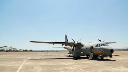 El destacamento español en Sigonella acaba de rotar parte de su personal. Un grupo de soldados recién llegados recibe una formación en una pequeña aula habilitada en uno de los contenedores provisionales donde trabaja el grupo de 39 militares. El avión que utilizan está a pocos metros, sobre una tórrida explanada que huele a combustible. Está diseñado para la vigilancia marítima de día y de noche, con una cámara infrarroja esférica insertada en el morro. Eso le permite localizar e identificar cualquier embarcación y detectar actividades de tráfico ilegal de personas, armas y petróleo, que es a lo que se dedica. También es un aparato pensado para ayudar en tareas de búsqueda y rescate de personas. Pero ahora esta parte, sin barcos, se ha esfumado. El avión, junto a otros cinco, es lo que queda de la Operación Sophia. Casi desmantelada, nadie se atreve a pronosticar si continuará más allá del 30 de septiembre, cuando expira su mandato.