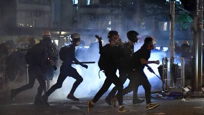 No todos los vecinos han actuado contra los manifestantes. Cuando Bryan, de 47 años, los ha visto llegar ha vaciado su nevera y ha salido a la calle en compañía de su mujer para repartir alimentos y bebidas. “Los supermercados estaban vacíos y quería ayudar”, asegura. Un gesto que ilustra la enorme simpatía popular de la que gozan las protestas entre los hongkoneses.