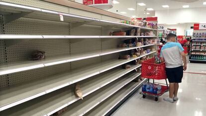 En Florida, el jueves, los condados pusieron a disposición centros de distribución de sacos de arena, para colocar en las puertas en las zonas inundables, y ya se veían largas colas para comprar provisiones en los supermercados. La televisión local mostraba estantes sin existencias y colas en las gasolineras en el centro del Estado. En Miami, en cuya área metropolitana viven más de cinco millones de personas, los estantes de agua y de comida enlatada en los supermercados estaban comenzando a vaciarse.