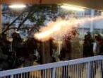 La Policía comenzó allí a lanzar ronda tras ronda de botes de gases lacrimógenos; si los manifestantes lograban devolver alguno hacia las filas de agentes, los participantes estallaban en aplausos y gritos de júbilo. Algunos arrojaron cócteles Molotov. Los cañones de agua hicieron nuevamente su aparición, con líquido teñido de azul para señalar a quienes hubieran estado en primera fila de las protestas.