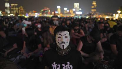 “Cinco demandas, ni una menos”, gritan, en pie, los jóvenes concentrados en Tamar. Los muchachos que participaban enmascarados han ido desapareciendo. Poco a poco, se han concentrado frente a la sede del Ejército chino, donde intentan levantar barricadas y arrojar ladrillos. La Policía, en estado de máxima alerta ante el aniversario chino, responde con cañones de agua y gas pimienta. Más tarde buscará a los manifestantes en los autobuses, el metro, los ferris que cruzan la bahía. Otra noche, otro fin de semana —el décimoséptimo— de enfrentamientos.