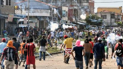 Una detonación a lo lejos. Otra detrás de la esquina. En pleno barrio de Sopocachi, sector de clases medias y altas de La Paz. Estallidos de petardos. También de cartuchos de dinamita cortados en pedazos, según el Gobierno. Y después gases lacrimógenos, cargas policiales, enfrentamientos entre manifestantes y uniformados. Bolivia está partida en dos. Las elecciones generales del pasado domingo profundizaron la brecha social entre seguidores del presidente, Evo Morales, y de la oposición, cuyo principal representante es el candidato y exmandatario Carlos Mesa. Desde el lunes se registran protestas en las principales ciudades. Este miércoles los militantes del Movimiento Al Socialismo (MAS), el partido oficialista, y miles de personas que reclaman un cambio se concentraron en lugares y momentos distintos para exhibir unidad y fortaleza a la espera del resultado del escrutinio.