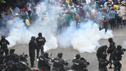 La Paz se sumó este lunes a las otras ciudades en paro. El método que usaron los opositores para detener las actividades en la sede de los poderes públicos ha sido el bloqueo de calles. Los enfrentamientos se produjeron, sobre todo, en las zonas residenciales de clase media que se encuentran en la “frontera” entre la ciudad y el campo. Miembros de los sindicatos de transporte que trabajan comunicando ambas áreas, y que son de origen popular e indígena, intentaron romper los bloqueos sobre las rutas en las que trabajan. En el barrio de Achumani, los vecinos resistieron y se produjo una pelea campal con piedras y palos. Al final, la Policía controló la situación usando gases lacrimógenos. Hubo varios heridos, aunque ninguno de gravedad. En cambio, un policía golpeado en otra región del país se encuentra en estado de coma.