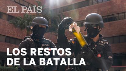 Al final de la jornada, llegan los números. En total, la Policía ha encontrado 3.800 cócteles Molotov, 921 botes de gas, 588 bidones, botellas o latas de líquidos corrosivos o inflamatorios, y doce arcos y catapultas de fabricación casera. Las tareas de limpieza continuarán este viernes.