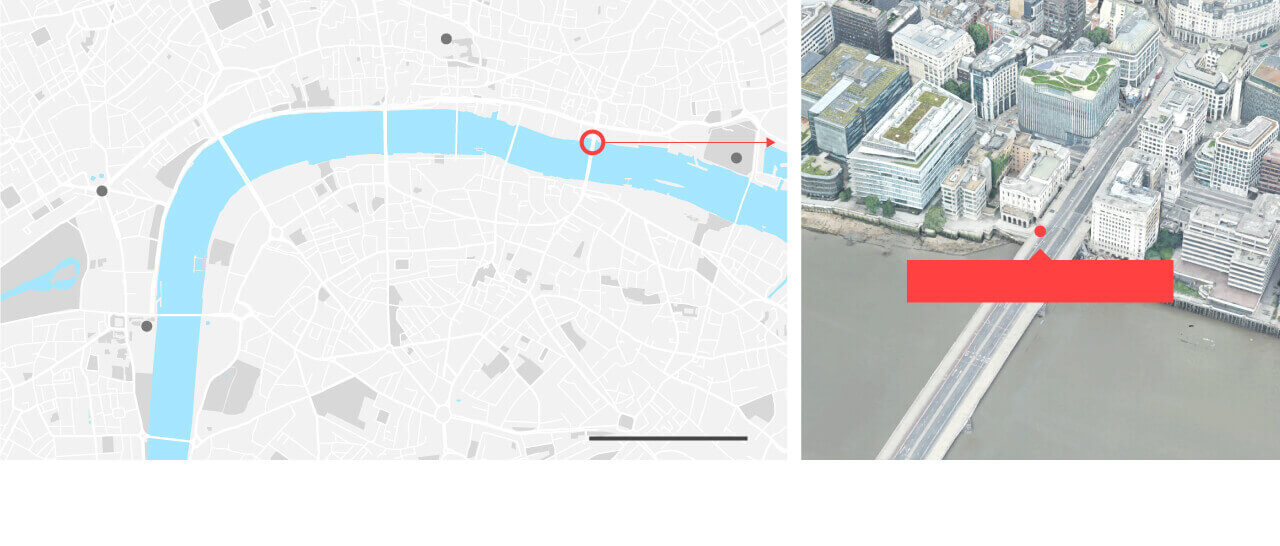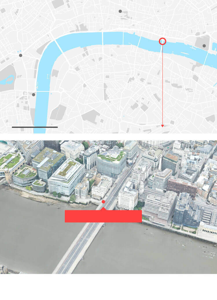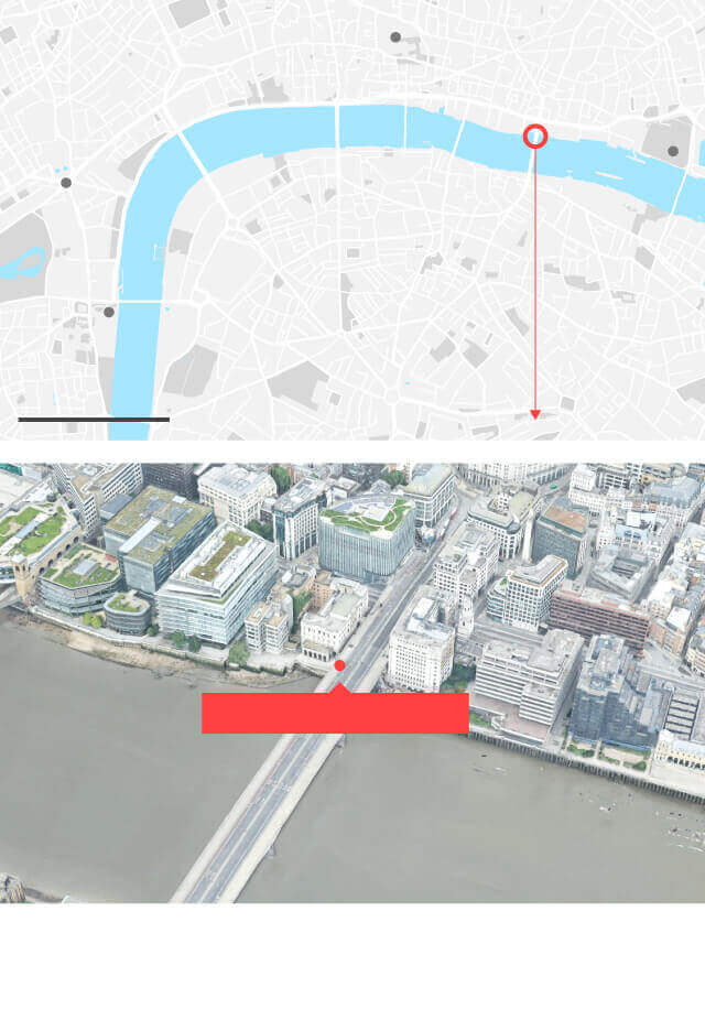 El puente de Londres fue cortado de inmediato mientras llegaban vehículos policiales y ambulancias. Scotland Yard desalojó a todas las personas que transitaban aún por la parte peatonal de su gran plataforma y pidió a los ciudadanos que evitaran esa zona.