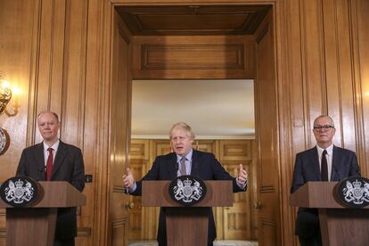 El Gobierno del Reino Unido ha presentado este martes su plan de actuación ante “el peor escenario razonable” que podría representar la amenaza del coronavirus, que este martes habían contraído ya 51 personas en todo el país. Flanqueado por Chris Whitty, el máximo responsable sanitario británico, y Patrick Vallance, el principal asesor científico de Downing Street, el primer ministro Boris Johnson ha comparecido públicamente ―algo que le venía reclamando la oposición en los últimos días― para transmitir calma a los británicos. “Permítanme ser absolutamente claro: la gran mayoría de las personas que contraigan este virus tendrán síntomas leves y se recuperarán rápidamente, por lo que hemos visto hasta ahora”, ha asegurado Johnson, en una intervención en la que ha optado por la prudencia y la contención, para que fueran los expertos los que dieran las explicaciones correspondientes. Su principal aportación ha sido la de recomendar a los ciudadanos que no dejen de lavarse las manos, con agua caliente, “durante el tiempo en que uno tarda en cantar dos veces el Cumpleaños Feliz”.