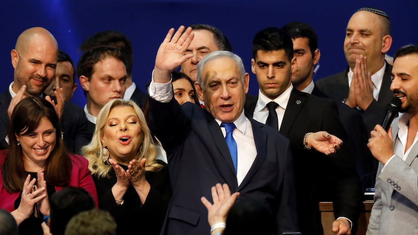Desgastado tras 14 años en el poder e inculpado en tres casos de corrupción, Benjamín Netanyahu, el primer ministro que más tiempo lleva en el cargo en Israel, ha dado la campanada al ganar las legislativas celebradas el lunes al frente de un bloque conservador que no alcanza mayoría suficiente para gobernar. A falta de conocer los resultados definitivos de un premioso recuento, la derecha suma 58 de los 120 escaños en liza una vez escrutado el 99% de los sufragios.