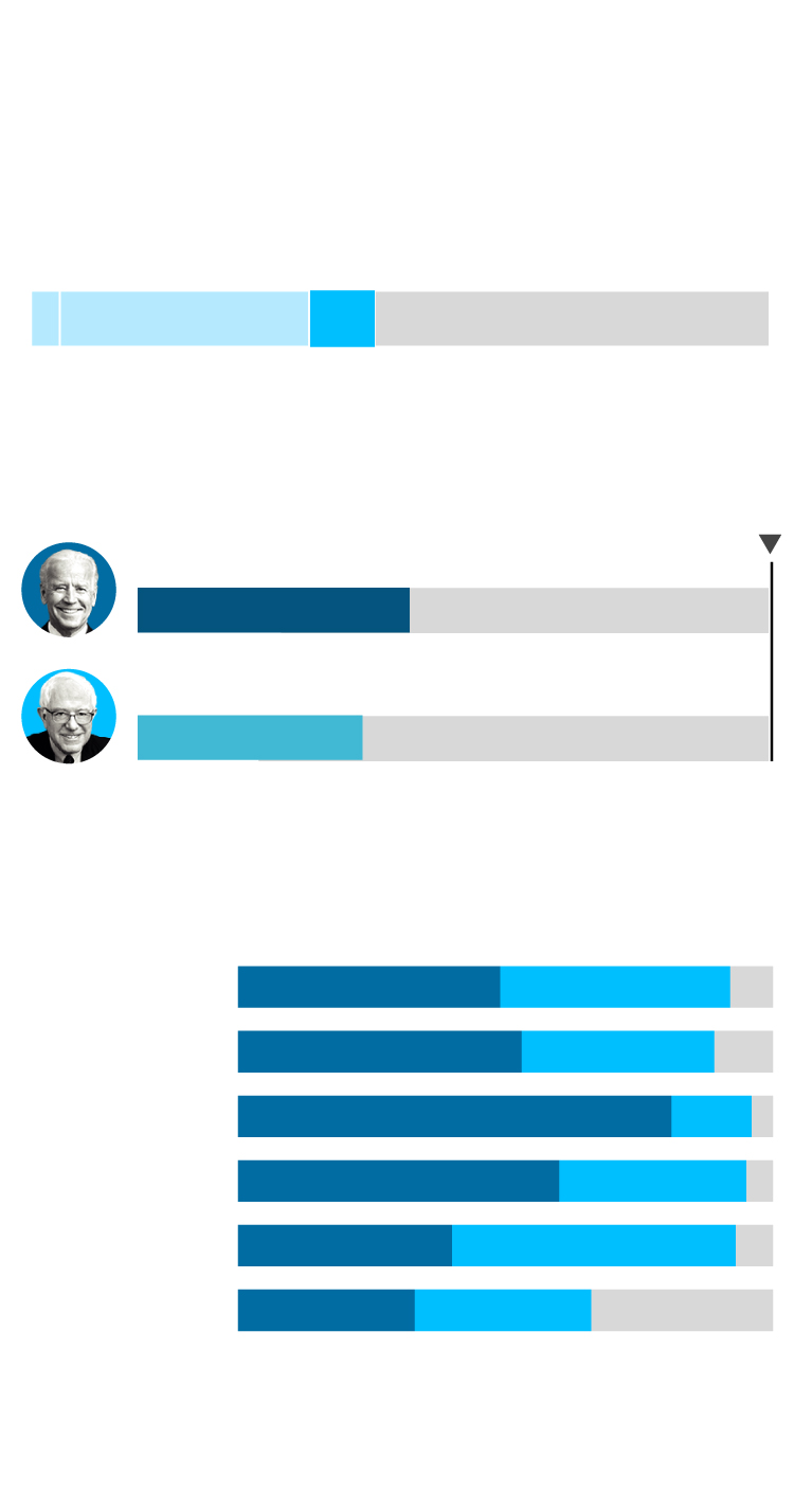 Biden compareció por la noche en Filadelfia. "Quiero agradecer a Bernie Sanders y a sus seguidores por su energía inagotable y su pasión”, dijo. “Compartiremos un objetivo común”, les ha recordado, “y juntos derrotaremos a Donald Trump”. “Sabemos pelear”, añadió, “pero ahora debemos mostrar que sabemos también curar”. Bernie Sanders, de manera significativa, no compareció hasta este miércoles por la tarde para confirmar que sigue en la carrera.