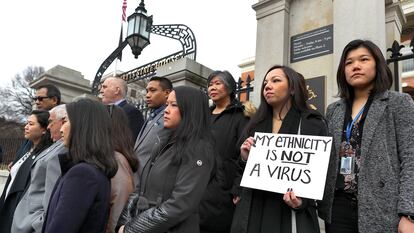 Un hombre golpea en la cabeza a una mujer, en las galerías del metro de Nueva York, tras llamarla “puta enferma”. Un joven escupe y derriba de una patada en la espalda a un viandante, en la misma ciudad, al grito de “puto coronavirus chino”. En un instituto de Los Ángeles, un joven de 16 años es agredido por sus compañeros que le acusan de tener Covid-19. Empleados de un hotel de Indiana impiden la entrada a una familia con rasgos orientales. Decenas de historias circulan por las redes sociales y la prensa estas semanas. Un total de 260 colectivos firmaron una carta a los líderes del Congreso pidiendo acción contra “la marea creciente de racismo dirigido a la comunidad asiático-estadounidense”. Una coalición de grupos de derechos civiles puso en marcha el jueves pasado una página web para documentar denuncias de estos incidentes. En 24 horas, recogieron más de 40.