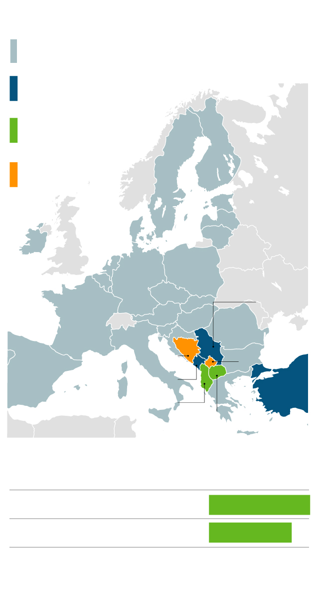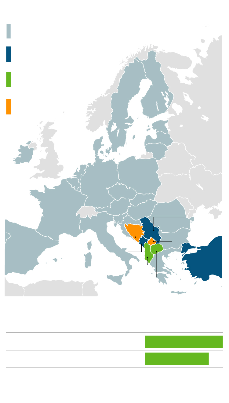 El comienzo de las conversaciones de ingreso no tiene todavía fecha, aunque la intención es que empiecen lo antes posible. Lo primero será oficializarlo a través de procedimiento escrito en los próximos días. Tampoco hay un horizonte claro de cuándo podría consumarse su entrada, pero los precedentes de los países que siguen en la lista de espera, caso de Turquía (desde 2005), Montenegro (2012) y Serbia (2014), indican que pueden prolongarse indefinidamente sin que el paso del tiempo sea garantía de éxito. Tanto la Comisión Europea como la presidencia de turno de la UE, ostentada por Croacia, rehuyeron lanzarse a conjeturas que puedan ser desmentidas luego por la realidad. “Cuantas más reformas se realicen, más corto será el tiempo que tarden en acceder”, insistieron con cautela.