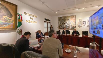 Esta ha sido la primera vez que, por ejemplo, Macron, Erdogan o Xi han puesto voz al rostro del mandatario de México. Leyó un texto en casi siete minutos mientras los 19 socios escribían notas o le miraban fijamente. La videoconferencia no le ha supuesto a López Obrador ni un traslado, además, ha estado acompañado por funcionarios clave de su Gabinete: el canciller Ebrard; el ministro de Hacienda, Arturo Herrera; el subsecretario de Salud y principal portavoz sanitario, Hugo López-Gatell; y el subsecretario de Exteriores, Julián Ventura. “Nosotros hemos considerado que lo fundamental frente a este tipo de adversidades es apoyarnos en los especialistas, en este caso nos hemos apoyado en los médicos, en los científicos. Los políticos nos somos todólogos, necesitamos de la asesoría de los especialistas para no cometer errores”, dijo nada más al comenzar su intervención.