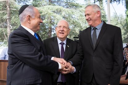 Benjamín Netanyahu busca emprender su cuarto mandato consecutivo como primer ministro en Israel gracias al acuerdo de Gobierno de unidad que negocia desde el sábado con Benny Gantz. Pretende que el pacto con el líder centrista que le desafió en tres elecciones durante el último año le blinde ante la justicia, como encausado por corrupción, mientras siga al frente del Gobierno y le ampare con la misma protección legal cuando tenga que ceder el timón del Gabinete dentro de 18 meses.