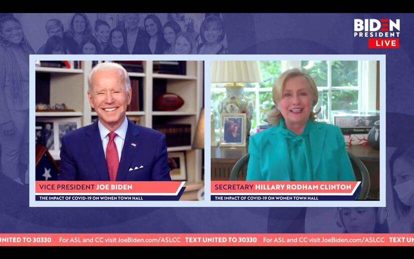 “Para mí este es un momento en el cual necesitamos un líder como Joe Biden”, subrayó Clinton en el mitin virtual, en referencia a la situación de Estados Unidos, que registra más de un millón de casos confirmados de coronavirus, lo cual ha paralizado la sociedad, llevado el desempleo a más de 26 millones de personas y abocado la economía a una recesión, que muchos esperan será la mayor desde la Gran Depresión de los años 30 del siglo pasado. En toda esta crisis, el presidente ha sido errático en sus decisiones y declaraciones desde el inicio e incluso llegó a sugerir la semana pasada que la población tratarse el virus con “una inyección de desinfectante” o con “luz solar”.