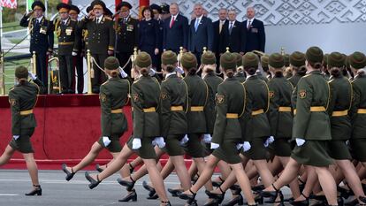 Pero para Lukashenko, el desfile no solo es una tradición de gran simbolismo e importancia para uno de los territorios más tocados por el conflicto en el que murieron unos 27 millones de ciudadanos soviéticos, también ha pasado a ser una forma de mostrar su fortaleza dentro del país. También un mensaje velado hacia Rusia, donde Vladímir Putin ha aplazado su gran desfile militar; como también lo han hecho el resto de líderes del espacio post soviético. Este sábado, las celebraciones en Rusia se limitaron a desfiles aéreos y discretas ceremonias, como en la que participó el líder ruso, que depositó flores en la tumba del soldado desconocido, en la plaza Roja de Moscú, donde después se congregaron espontáneamente grupos de personas, ignorando el confinamiento. “Es mejor morir de pie que vivir de rodillas”, dijo Lukashenko en marzo, cuando Rusia cerró sus fronteras a los extranjeros.
