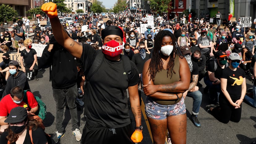 Derek Smith, un afroamericano de 36 años empleado en el sector de telecomunicaciones, acudió por primera vez a las protestas en la capital del país, Washington. Estaba allí para alzar la voz por sus hijos, de 10 y siete años, pues crecerán, según dijo, en una sociedad que los discrimina. Esta cadena de manifestaciones comenzó en Minneapolis hace una semana por la muerte de un afroamericano a manos de la policía, pero ha trascendido a todo el país como un grito contra la discriminación general a los negros. “La diferencia entre cómo tratan a los blancos y a nosotros siempre está presente, ellos consiguen cosas que nosotros no”, afirmó entre la multitud. Poco después, al llegar las siete de la tarde, la hora del toque de queda ordenado por la alcaldesa, Muriel Bowser, la muchedumbre permaneció allí.