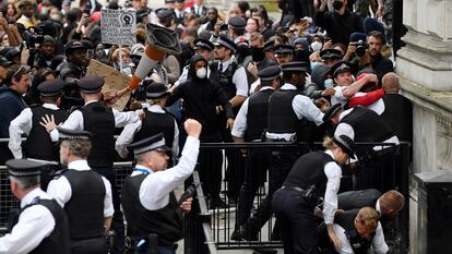 Manifestantes contra el racismo se enfrentan a la policía a las puertas de Downing Street