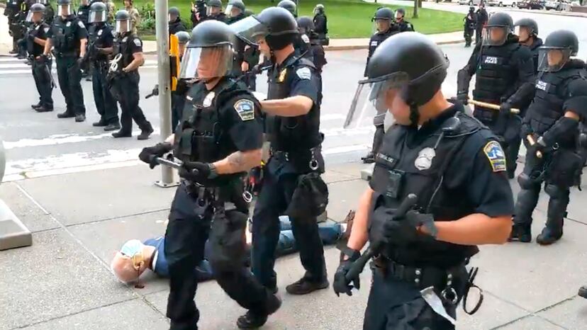Un grupo de policías de Buffalo (Nueva York) agredieron este jueves a un hombre de 75 años mientras patrullaban por la ciudad durante la décima jornada consecutiva de protestas antirracistas, que se han desencadenado en el país tras la muerte del afroamericano George Floyd a manos de un policía blanco. La dura escena, que fue grabada por unos periodistas de la emisora de radio local WBFO, muestra cómo uno de los agentes empuja al hombre, que cae al suelo y se queda aparentemente inconsciente mientras le sale sangre del oído. La emisora asegura que el hombre fue atendido por dos médicos, que se lo llevaron en ambulancia, y ahora se encuentra estable. El vídeo ha causado indignación en gran parte de la sociedad estadounidense y las redes sociales se han llenado de condenas a la actuación policial.
