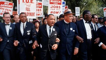 2. El Domingo sangriento en Selma, Alabama, 1965. El atentado de Birmingham reforzó el movimiento antisegregación. Con la Ley de Derechos Civiles aprobada en 1964, el reverendo King lideró una campaña para registrar a los afroamericanos de Alabama para votar. En medio de la tensión con el gobernador Wallace, un afroamericano murió en un ataque contra una manifestación en febrero de 1965. En respuesta, los líderes de los derechos civiles planearon una marcha de 87 kilómetros entre Selma y Montgomery. Era el 7 de marzo de 1965. Al llegar al puente de Edmund Pettis, la policía cargó brutalmente contra ellos. La represión fue grabada en televisión y se convirtió en poderoso símbolo de la violencia contra los negros. Fue bautizado como el Domingo sangriento. El 21 de marzo, alrededor de 2.000 personas, con líderes religiosos de todo el país, iniciaron de nuevo la marcha en dirección a Montgomery lideradas por King. En agosto, el presidente Johnson firmó la Ley de Derechos de Voto, que prohibía las prácticas discriminatorias en el proceso de registro.
