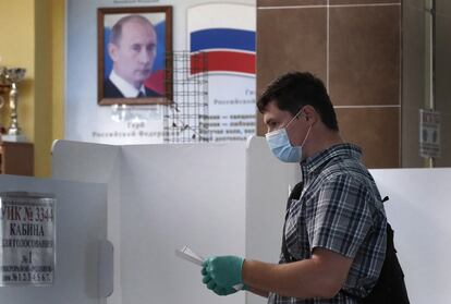 En la singular votación, algunas regiones han habilitado un sistema de votación online, como Moscú y Nizhni Novgorod. Las urnas digitales se cerraron anoche. Además, para fomentar la participación, las comisiones electorales regionales han formado brigadas para ir a recoger el voto a domicilio. También a hospitales. En Oremburgo, han acudido también a centros sanitarios. En uno de ellos está Daria Krasnikova con su hijo, hospitalizado. La mujer, de 30 años, decidió no votar por desconfianza en el sistema. “No vi las urnas selladas, así que no me fie”, dice. Su marido, Nicolai, en cuarentena porque en su trabajo se han detectado casos de la covid-19, votó en casa. Un equipo de miembros de la Comisión Electoral local con trajes de protección se acercaron a recogerle el voto.