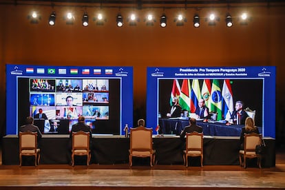 Bolsonaro recogió el guante: no nombró a Fernández, y usó su tiempo para defender a su Gobierno de lo que consideró ataques externos sin fundamento. “Nuestro Gobierno”, dijo, “dará seguimiento al diálogo con diferentes interlocutores para deshacer opiniones retorcidas sobre Brasil y exponer las acciones que hemos tomado para proteger la Amazonia y el bienestar de la población indígena”. El presidente de Brasil está preocupado por su imagen internacional. Los informes que ponen en evidencia niveles de deforestación récord y los estragos que la pandemia de la covid-19 ha producido entre las poblaciones indígenas amazónicas se le suma una administración caótica de la crisis sanitaria. En su discurso, Bolsonaro dijo ahora que pretende “conciliar la protección de la salud de las personas con el imperativo de recuperar la economía”. Y para ello buscará apoyo en el Mercosur, al que consideró “parte de las soluciones que estamos construyendo”.